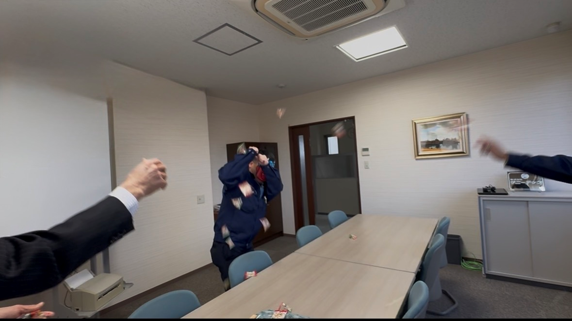 手が大きくなった分、一度に掴む豆も多くご覧のように鬼も防御で精一杯。